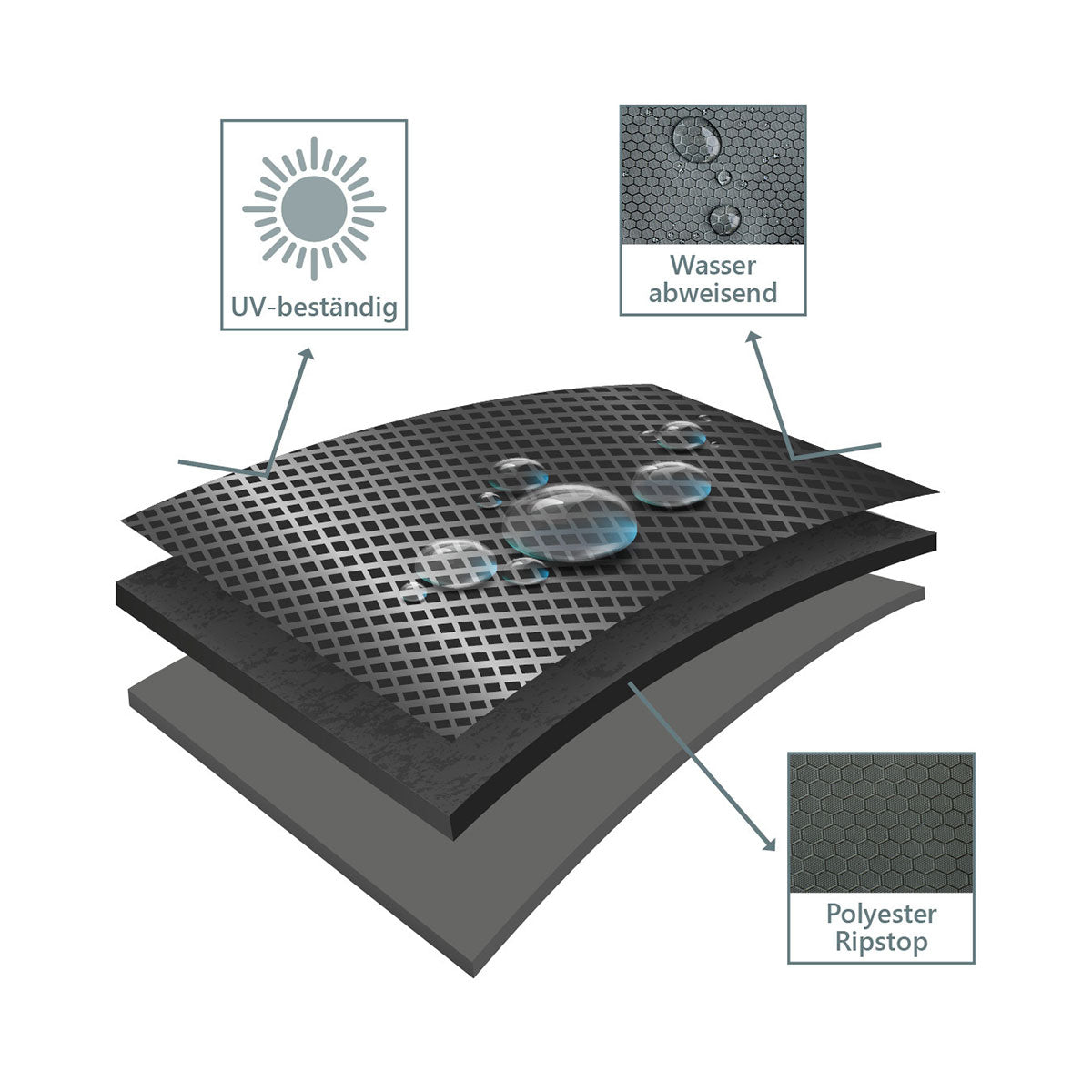 WICHTIGER HINWEIS: Um Schimmelbefall und Stockflecken vorzubeugen, reicht es nicht aus, lediglich die Schutzhaube über die Möbel zu ziehen. Die Haube muss unbedingt regelmäßig gelüftet werden, damit sich darunter keine Feuchtigkeit bildet.