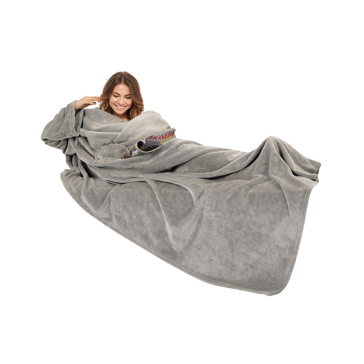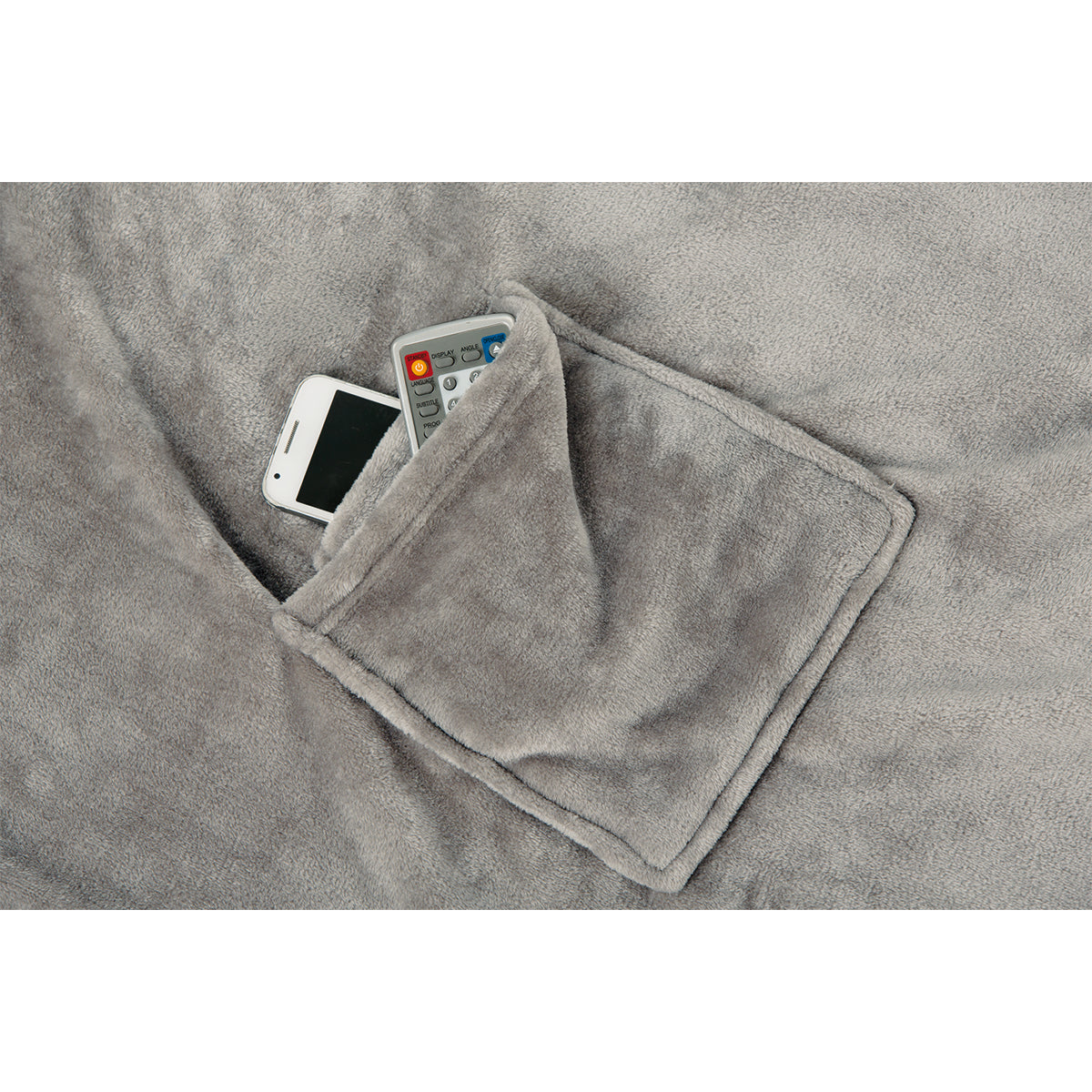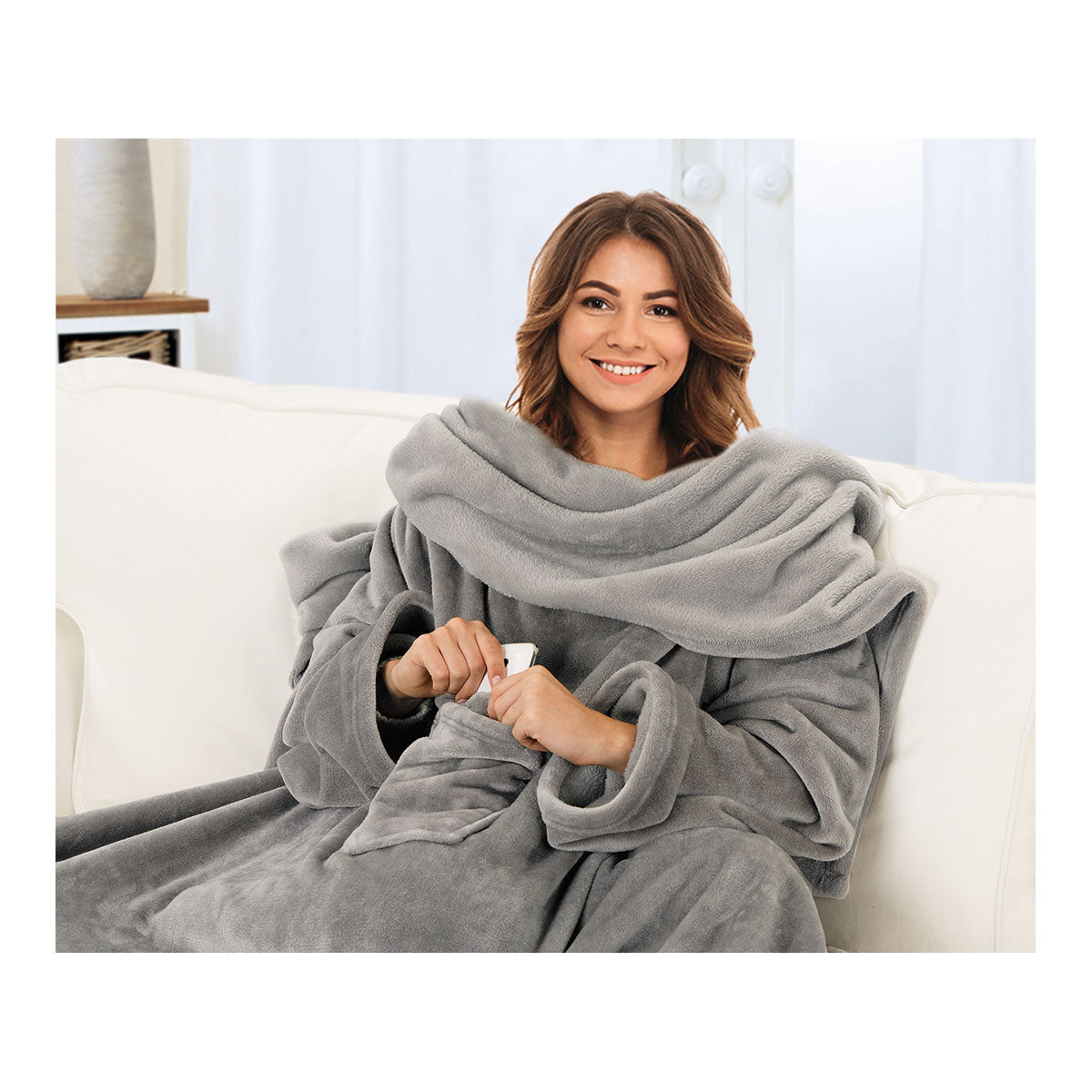 Einfaches Einhüllen durch großzügige Ärmel, ausreichend Platz für Handy, Fernbedienung etc. dank Brusttasche mit integrierter Tasche.