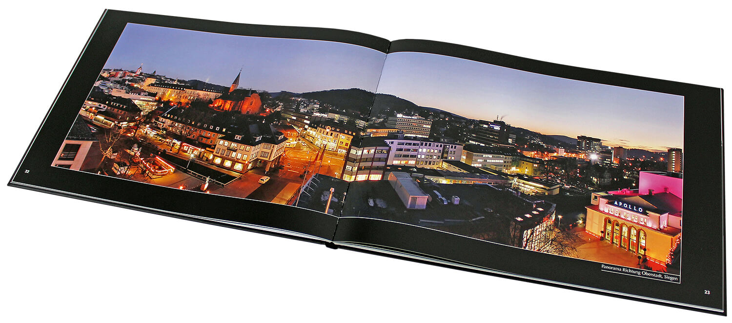 Rainer Vogels zeigt Nacht-Panorama-Aufnahmen von Siegen aber auch von anderen Städten und Ländern, verpackt mit Geschichten von Stefan Wierich. Die Mehrschicht-Nachtaufnahmen, die ganze Stadtpanoramen in ein unwirklich-offenlegendes Licht tauchen, lassen beim Betrachten Geschichten im Kopf, in der Phantasie entstehen. Das Titelbild beispielsweise – ein Blick in die zurückhaltend weihnachtlich geschmückte Poststraße in Siegen – lässt, trotz der Menschenleere, unmittelbar den Gedanken an eine festliche Stimmung aufkommen. Die Assoziationskraft der Bilder regte auch Stefan Wierich an, einen Bekannten des Fotografen. Seine Geschichten sind so ungestellt und gleichzeitig gestaltet wie Rainer Vogels Aufnahmen. Sie greifen die Stimmung der Bilder auf und suchen den Alltag in seiner „konzentrierten“ Form.