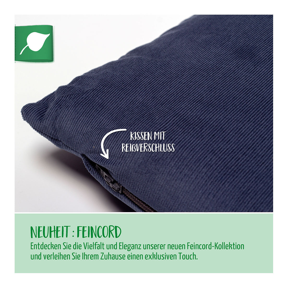 Ohne künstliche Zusatzstoffe mit Reißverschluss Bezug aus Feincord Baumwolle, der regional produziert wurde Feincord ist weich und strapazierfähig.