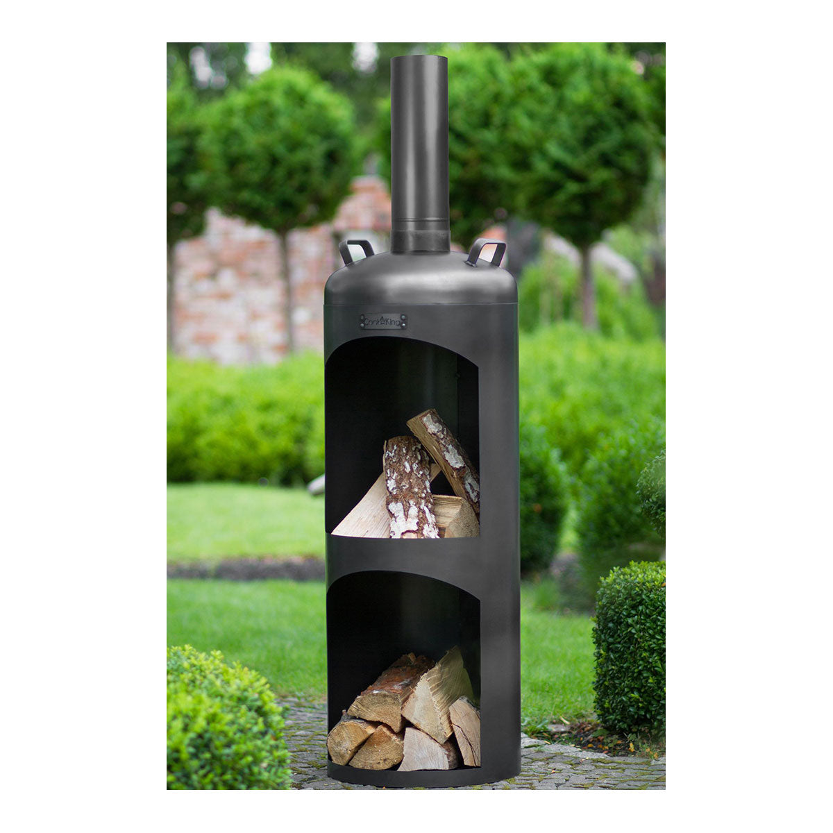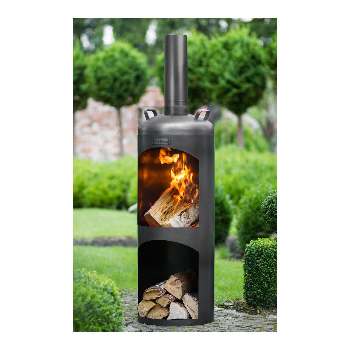 - Runder Gartenofen mit geschlossener Brennkammer für sauberes