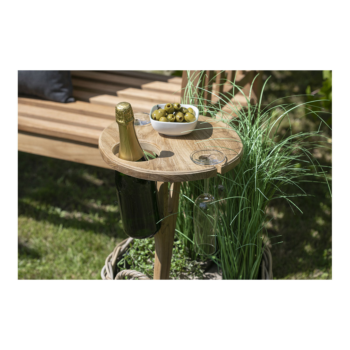Für Getränke und Gläser ergänzt der praktische Getränkehalter Poole aus wertvollem Teak-Holz auf stilvolle Weise Ihre Wohlfühloase unter freiem Himmel. Hochwertig verarbeitet und elegant – Ihr vielseitiger Begleiter Der Getränkehalter Poole kommt als praktisches Accessoire immer dann zum Einsatz, wenn Sie es gerade benötigen. Ideal auch für unterwegs am Strand, zudem auch zusammenklappbar. Der Getränkehalter fungiert als Spieß im Garten oder zum Beispiel im Blumenkübel und lässt sich so auf jeder Terrasse oder im Garten nutzen.