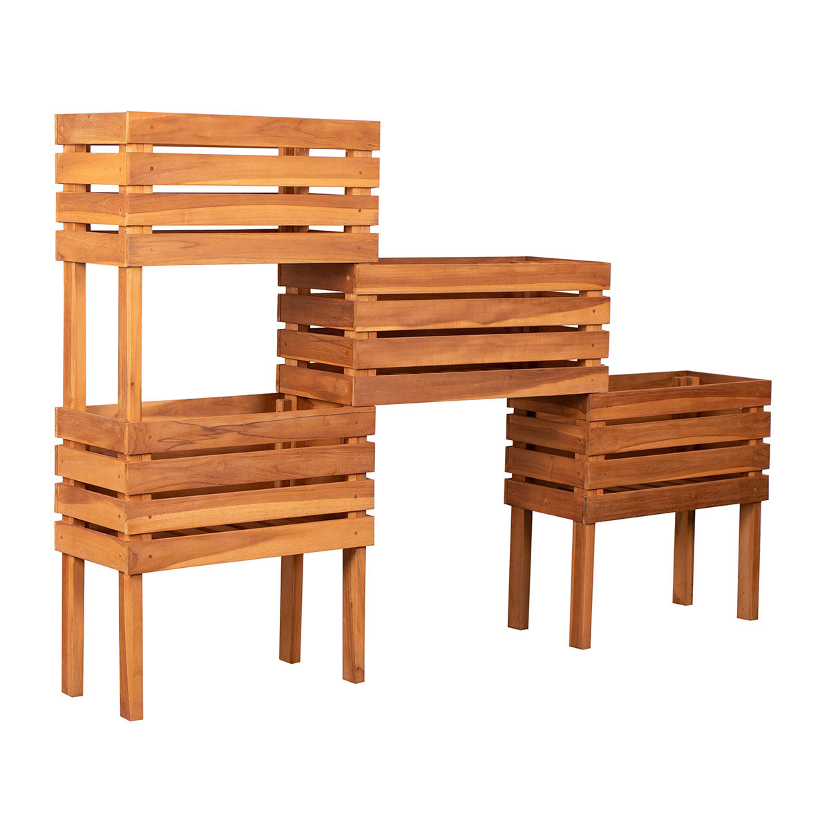 Das witterungsbeständige Teakholz des Hochbeets wird lange Jahre Ihren Garten aufwerten und bietet immer wieder neue Gestaltungsmöglichkeiten.