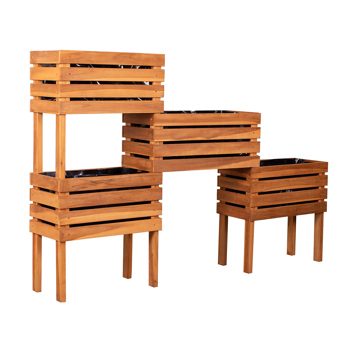 Das Hochbeet Teak repräsentiert sich als ein edles Möbelstück im Garten und auf der Terrasse. Es ist auch als eleganter Sichtschutz einsetzbar oder als schönes Accessoire in Ihrem gemütlichen Garten. Mit 4 einzelnen Hochbeeten für unterschiedliche Bereiche geeignet, anwendbar z.B. für zauberhafte Gartendekorationen oder natürlich auch in seiner ursprünglichen Bestimmung für Bepflanzung mit unterschiedlichen Gemüse- oder Pflanzenarten. Zu diesem Zweck sind die Pflanzgefässe mit Folie ausgeschlagen, aber es kann auch ohne Folie verwendet werden. Das Hochbeet Dundee aus Vollholz Teak ist vielseitig kombinierbar und bildet eine elegante Aufwertung zur Gartenstruktur durch seine robuste Optik.
