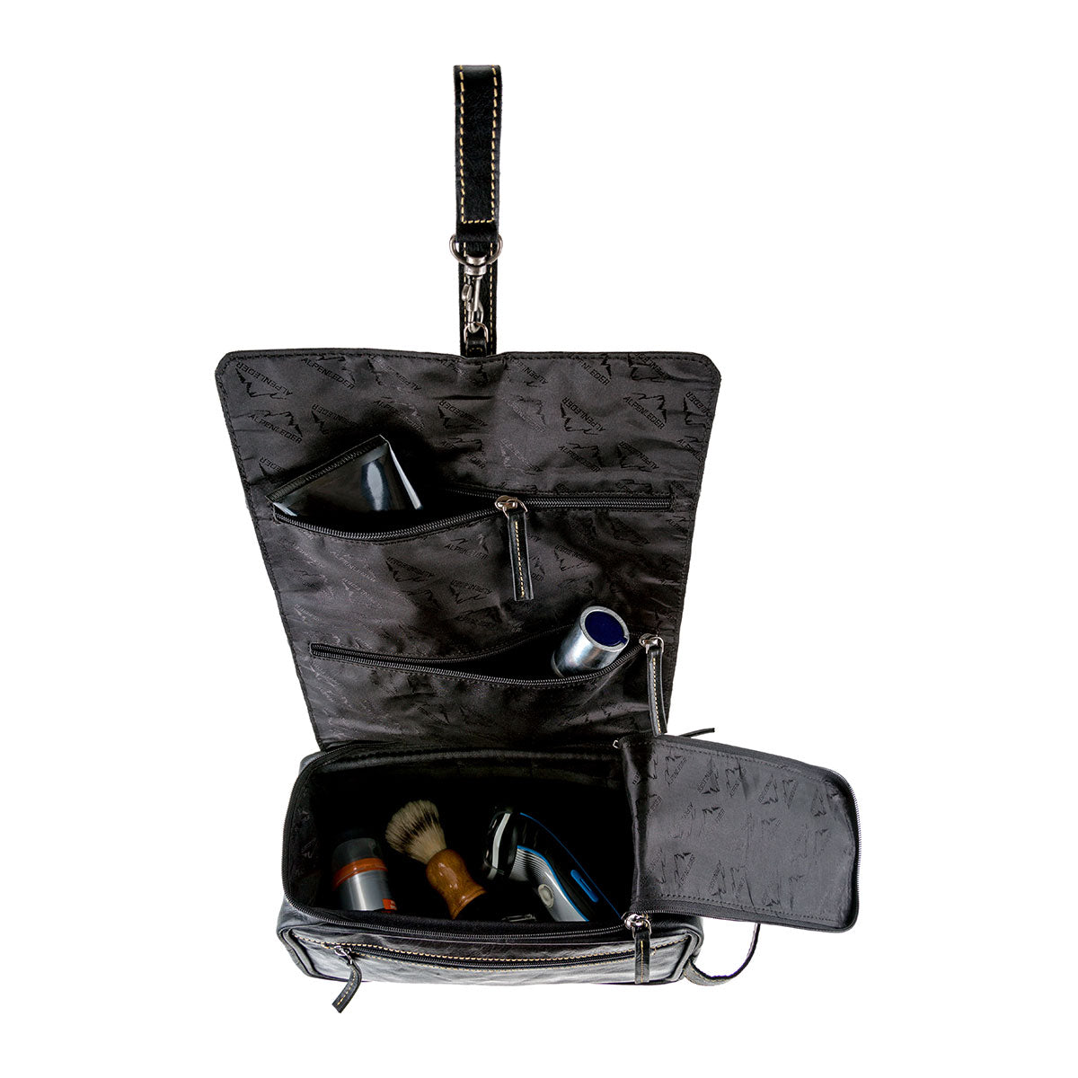 Der Vollleder-Kulturbeutel »ROLL UP« enthält: