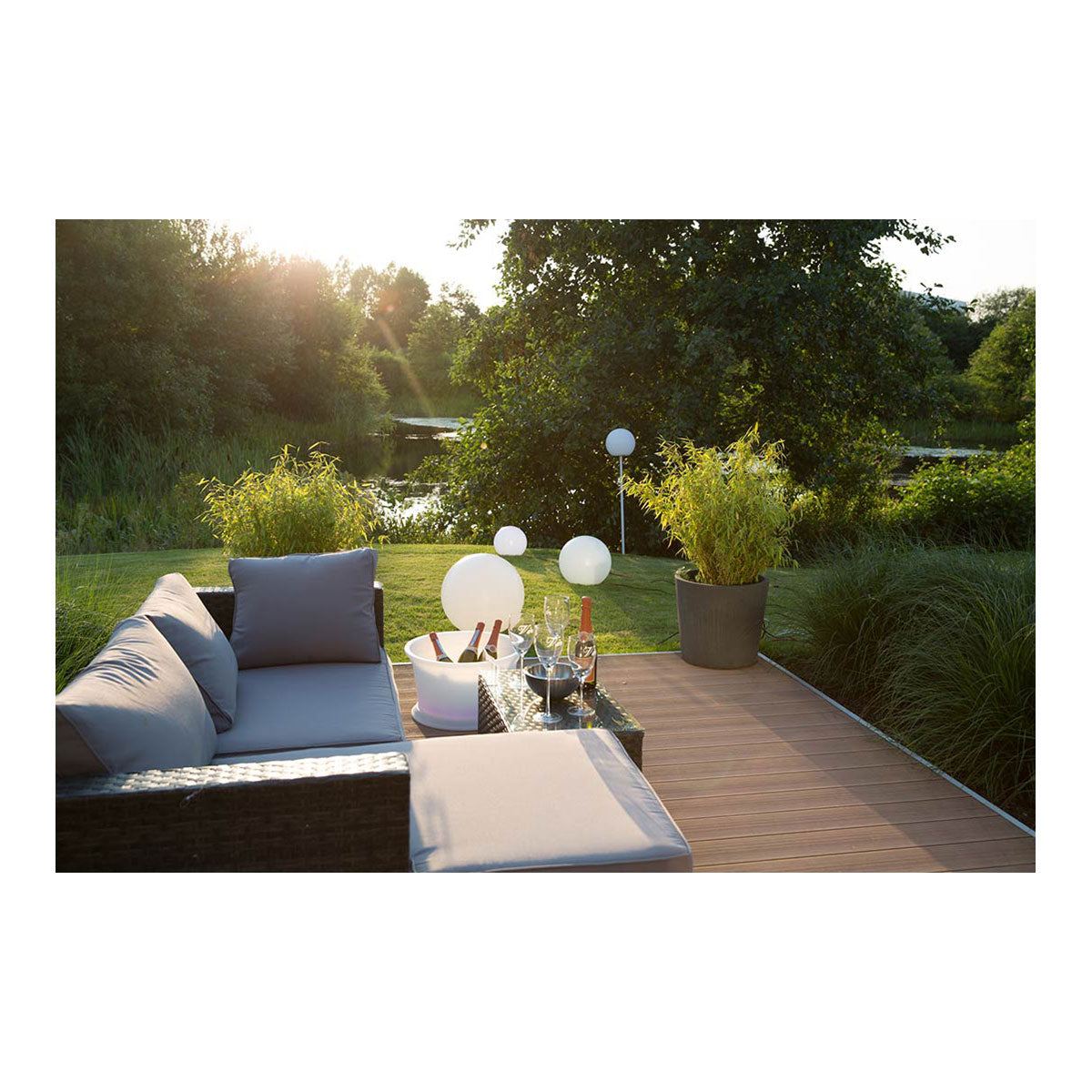 Ob als Gartenleuchte zur Aufwertung des Beetes oder als moderne Kugelleuchte im Haus, die Leuchtkugel ist ein echter Hingucker. Sein rundes, stilvolles Design machen ihn vielfältig einsetzbar. Die Leuchtkugel ist erhältlich in 3 verschiedenen Größen, 40 cm, 50 cm und 60 cm. Dabei ist der Shining Globe sowohl im Innenbereich als auch als Gartenleuchte außen verwendbar. Die Leuchte ist standardmäßig ausgestattet mit einer E 27 Fassung inklusive einem warmweißen Leuchtmittel.