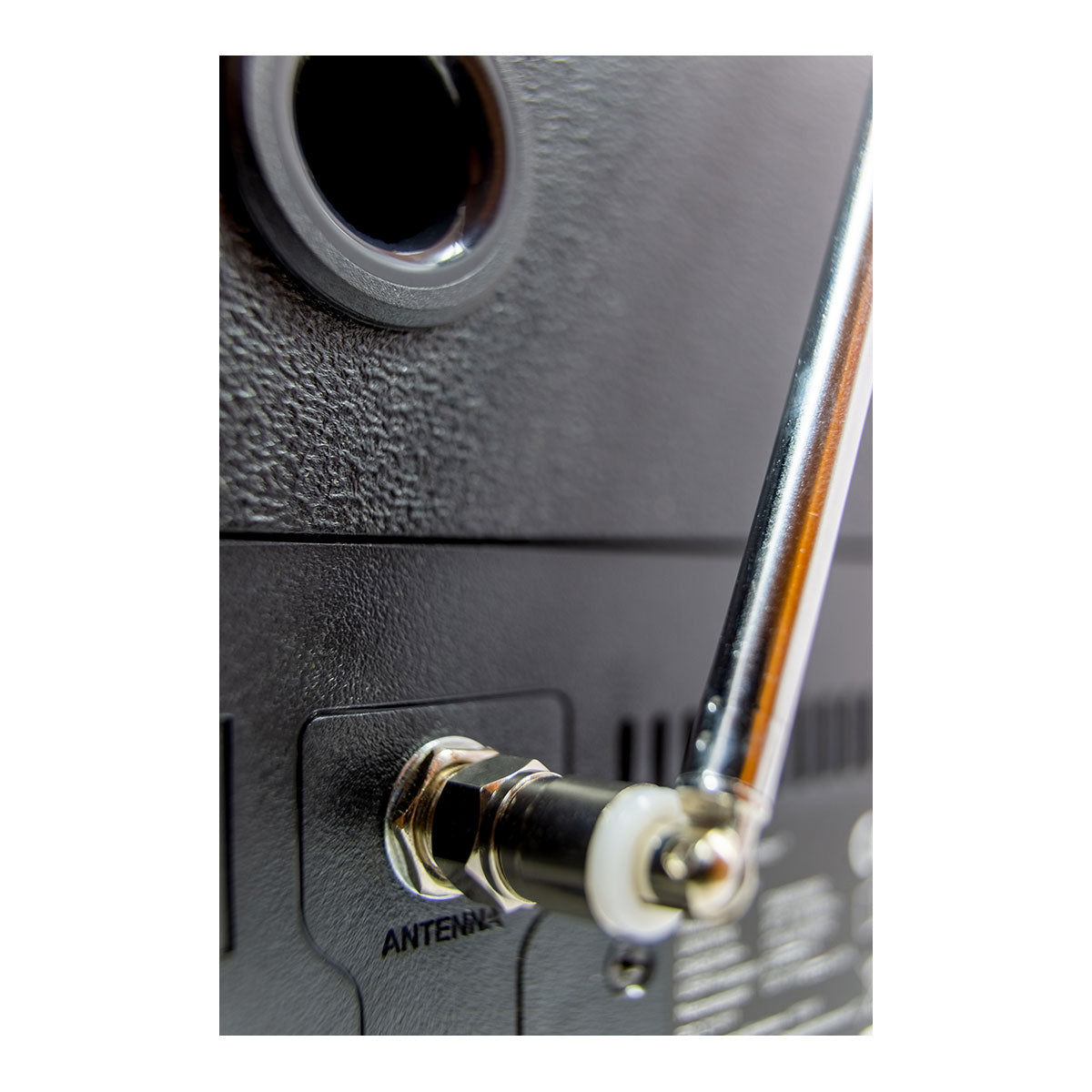 Des Weiteren verfügt das Gerät über einen USB-Anschluss zur Wiedergabe von MP3s oder zum Aufladen anderer Geräte wie Smartphones oder Tablets. Die Bluetooth-Streaming-Funktion ermöglicht eine drahtlose Verbindung zu anderen Geräten, sodass die Anlagebeispielsweise als Wiedergabegerät für Ihr Smartphone oder Tablet genutzt werden kann.