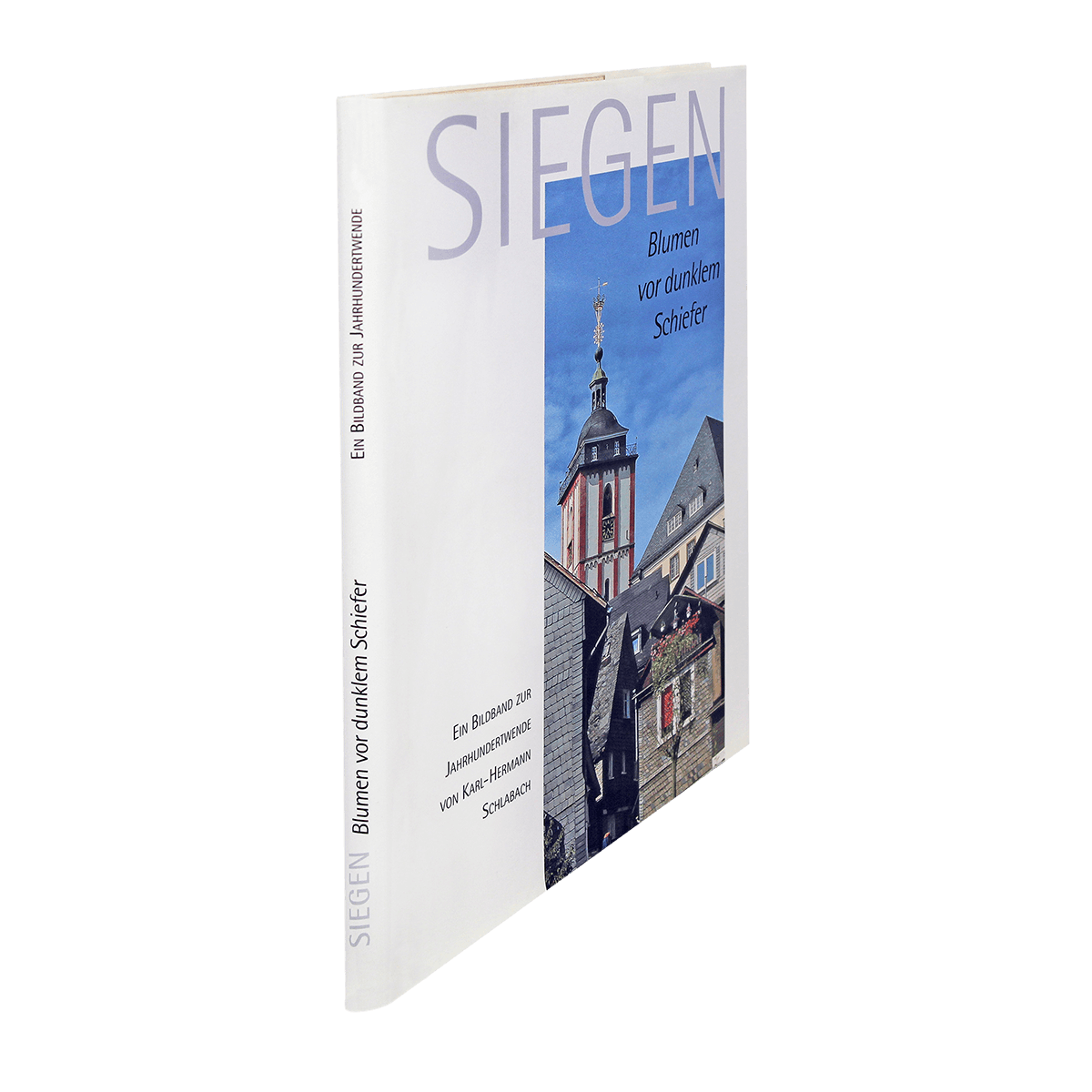 Siegen – der Bildband zur Jahrhundertwende. Bildbände von lebendigen Städten sind Zeitaufnahmen. Karl-Hermann Schlabach, Redakteur der Siegener Zeitung, hat dabei zumeist solche Bilder ausgewählt, die die besonders lebens- und liebenswerten Seiten der Stadt festhalten. Das freilich auch der dunkle Schiefer zu der Stadt und ihrer Umgebung gehört, lässt schon der Buchtitel erahnen. Die Bilder dieses Buches geben Ausschnitte seiner Wahrnehmung der Stadt wieder.