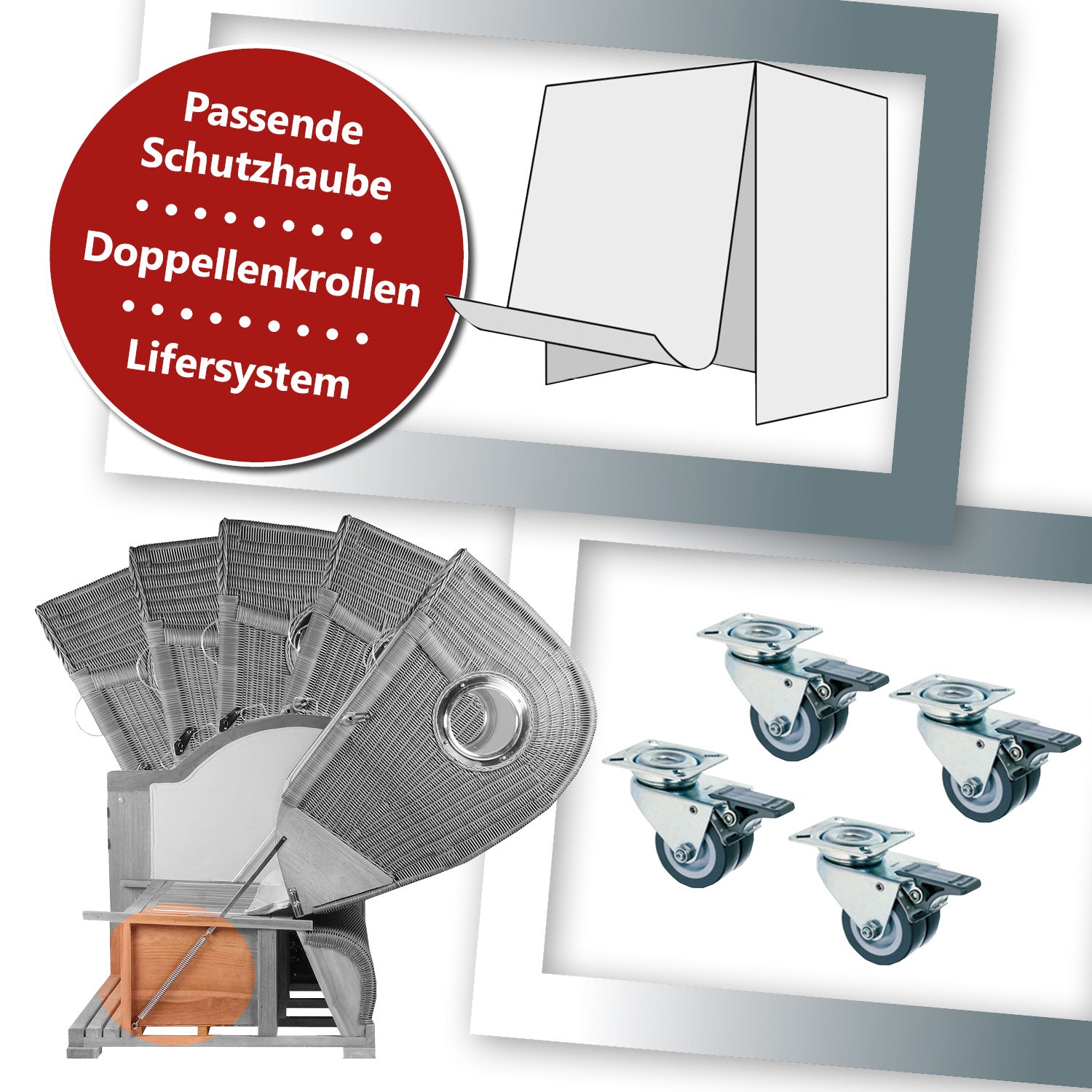 Strandkorb DÜNE, Design 01424 grau gestreift – inkl. gratis Feuerschale
