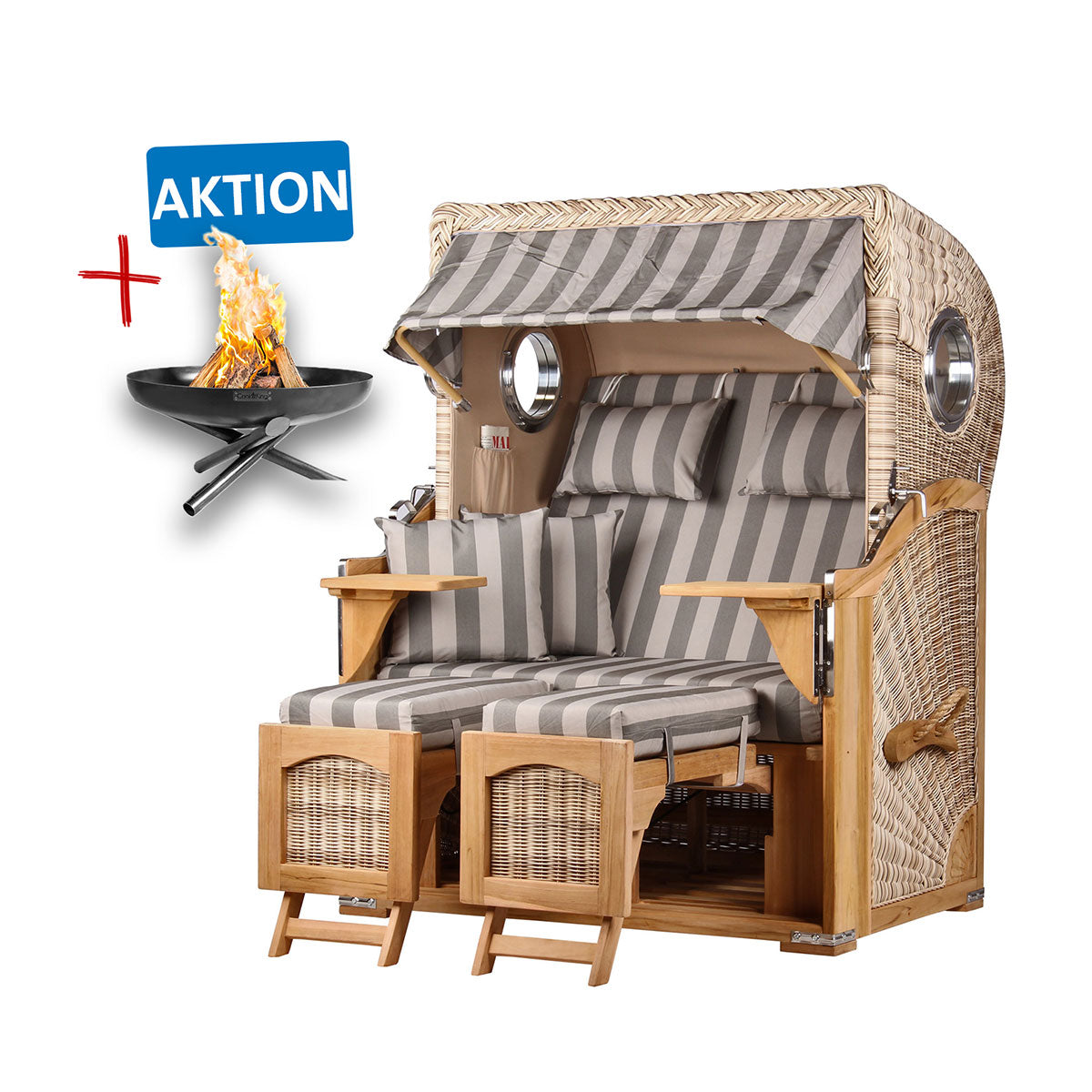 Strandkorb DÜNE Grau gestreift 537 – inkl. gratis Feuerschale