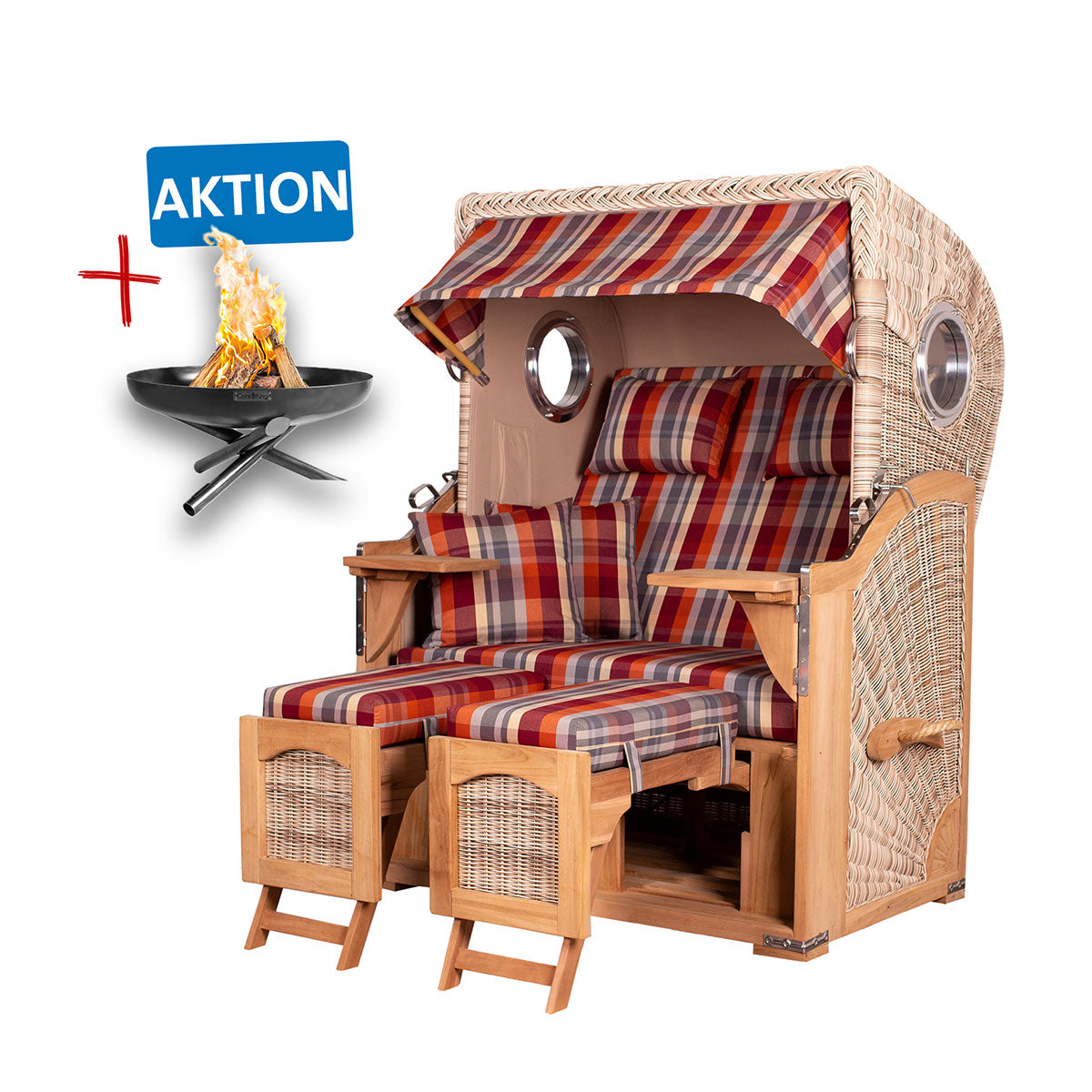 Strandkorb DÜNE Rot-Grau gestreift 584 – inkl. gratis Feuerschale