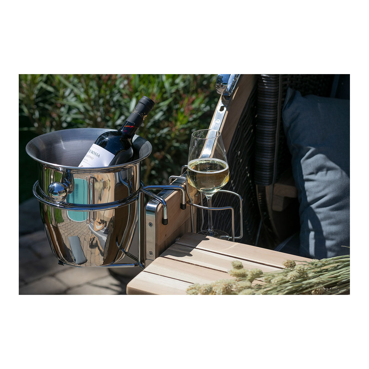 Genießen Sie ruhige Abende mit einem Glas Wein und etwas Obst und machen sich keine Gedanken, wo Sie Ihr Glas abstellen können ... dafür ist der Halter genau zur Stelle – abstellen und weiter genießen.