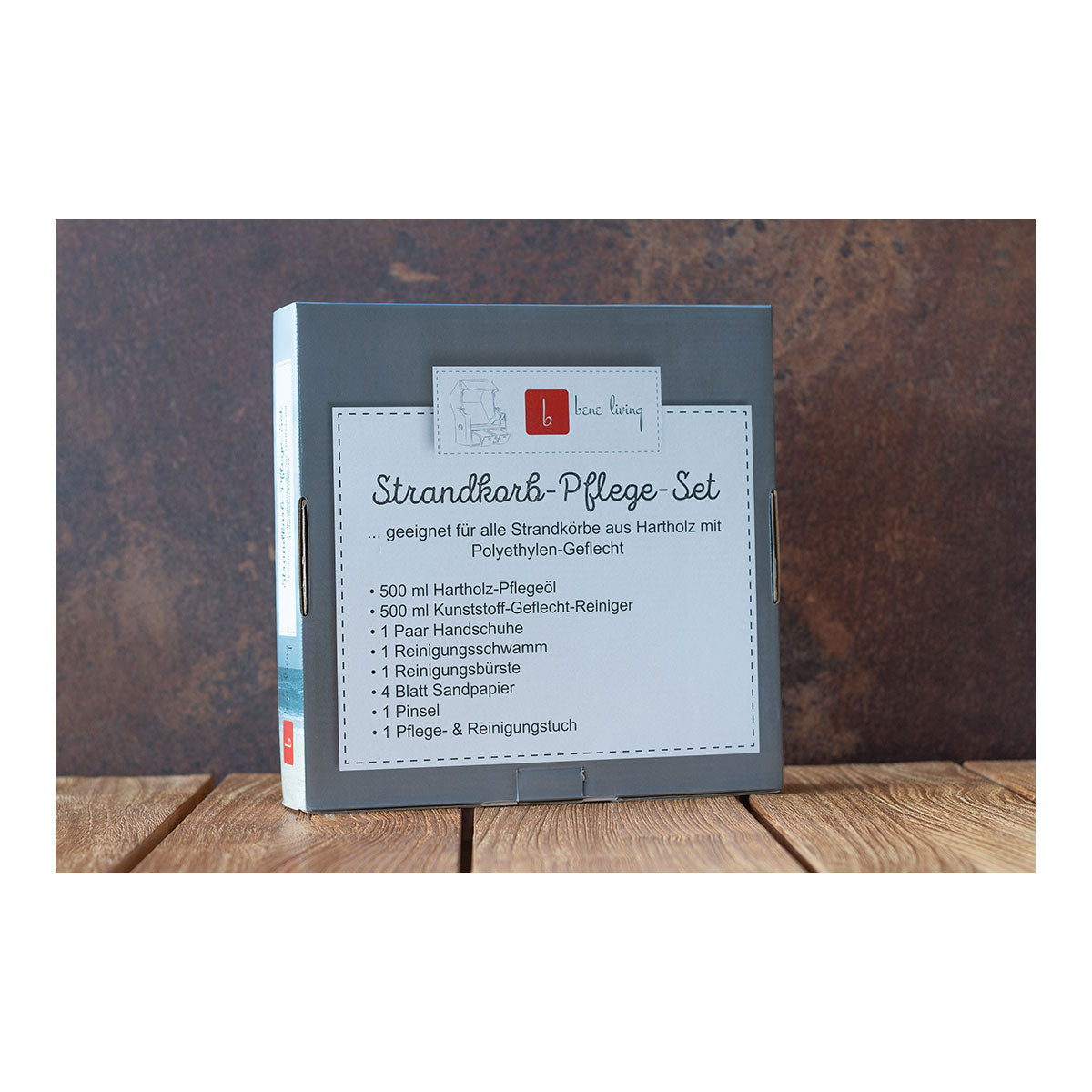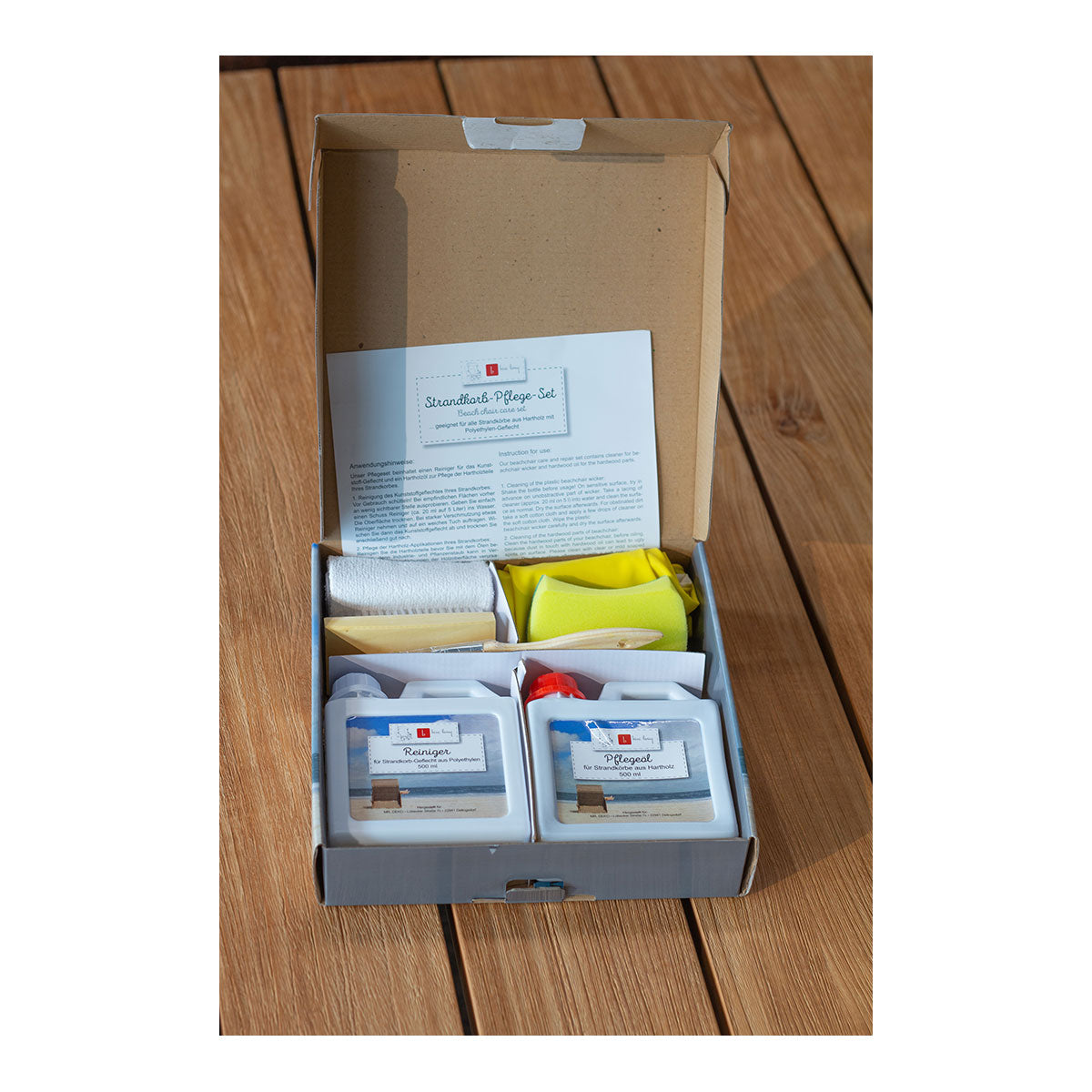 Das Pflegeset enthält eine spezielle Holzpolitur, die genau auf unsere Strandkorbmodelle abgestimmt ist und diese optimal pflegt und schützt. Es erhöht die Lebensdauer ihres Strandkorbes, da hiermit die Holzteile perfekt gepflegt werden. Das Holz erhält nach der Anwendung einen glänzenden Schimmer und wirkt wieder wie neu.
