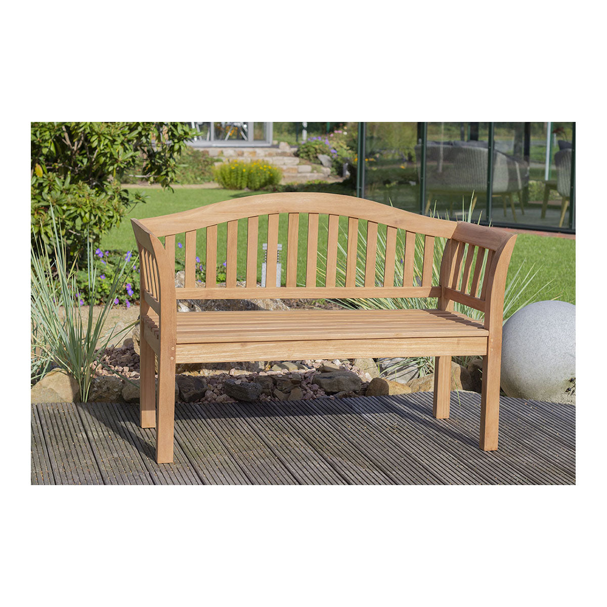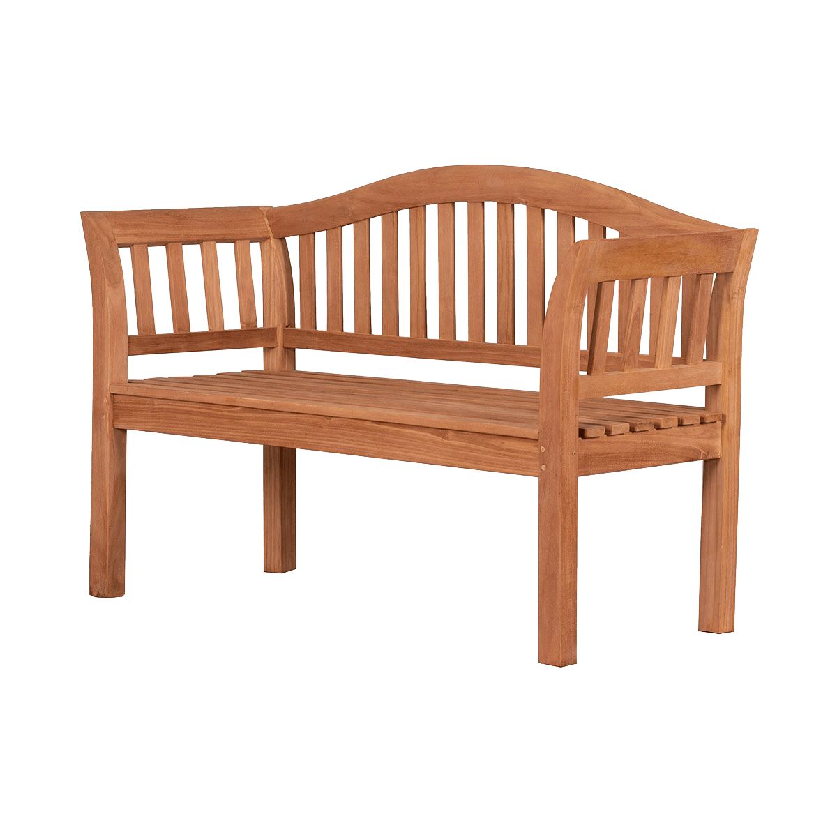 Die Teak Bank Wave aus naturbelassenem Massivholz ist dank der robusten Materialqualität optimal witterungsbeständig und verleiht jedem Außenbereich ein gemütliches Ambiente.