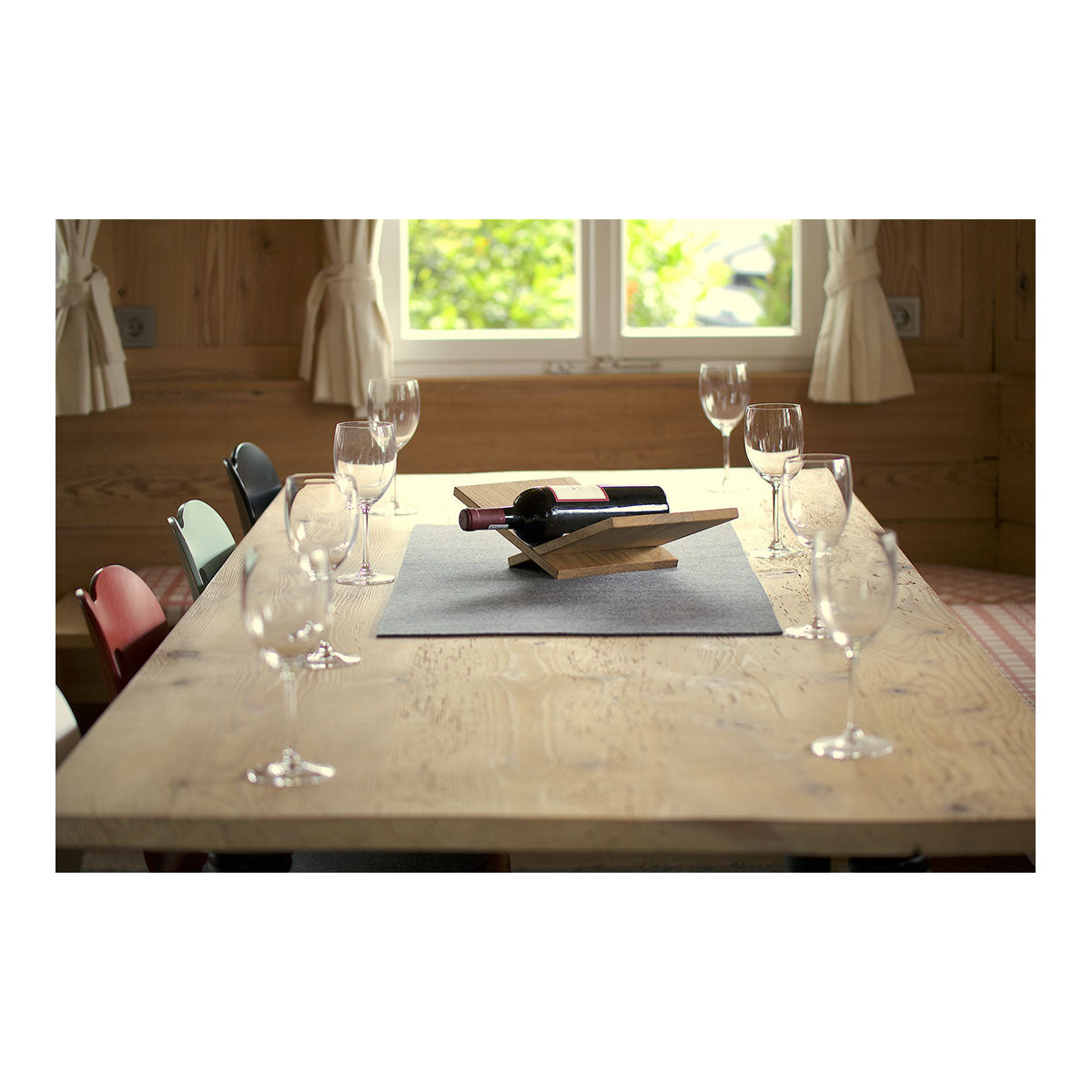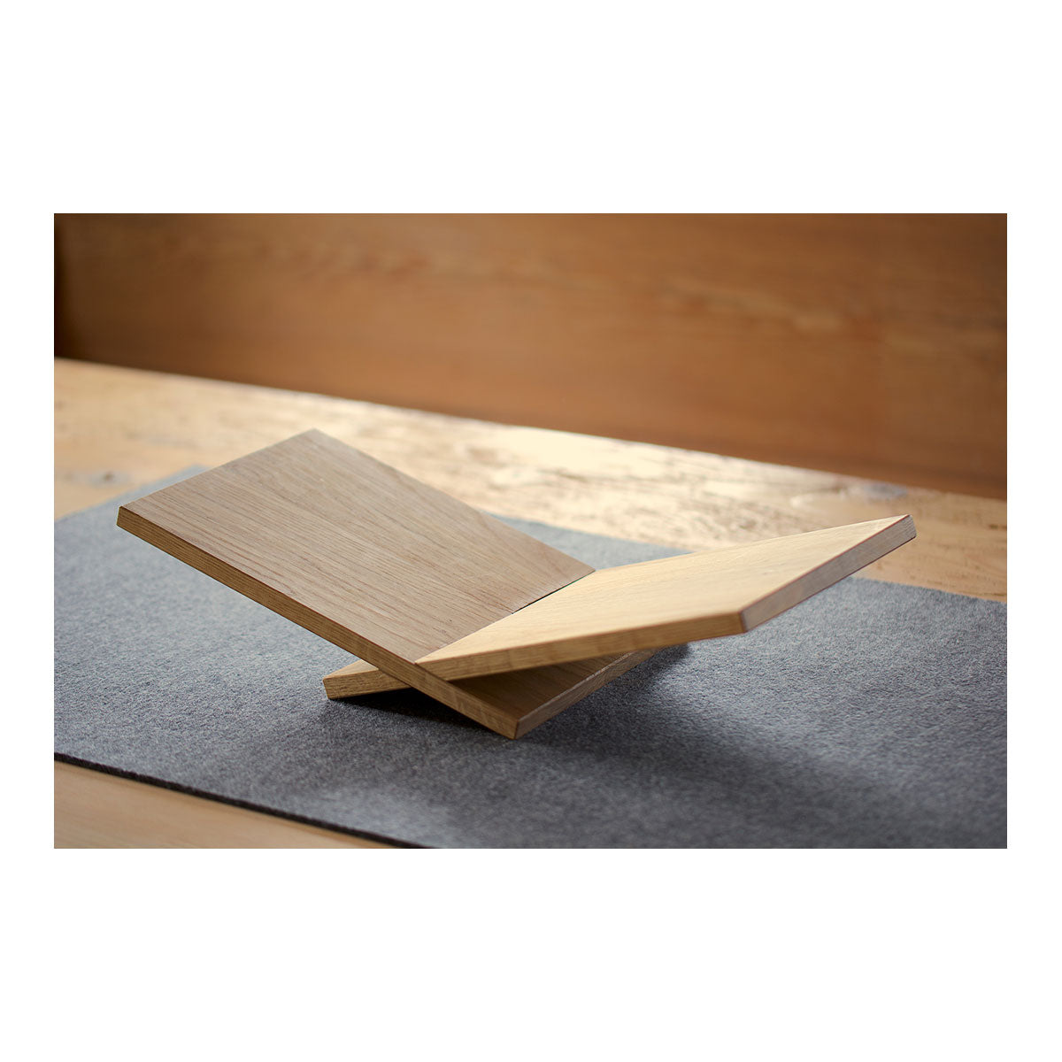Geben Sie der Duo Schale die Aufgabe, die Sie gerade benötigen. Wo gerade noch Obst oder Gemüse lagerte, wird es nun auf dem selbigen Utensil platzsparend verarbeitet. Die beiden aus Massivholz gefertigten Teile einfach auseinander nehmen und einzeln als formschöne Schneide- oder Servierbretter benutzen. Zusammengesteckt dient die Duo Weinliege allerdings nicht bloß als Schale oder Weinliege. Sie dient Ihnen auch als treuer Halter des Kochbuchs.