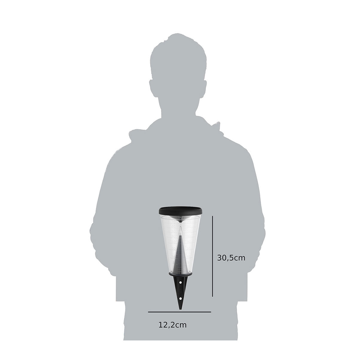 Der trichterförmige, abnehmbare Deckel schützt vor Verdunstung. Den praktischen Halter kann man entweder direkt in den Boden stecken oder an einem Stab anbringen.